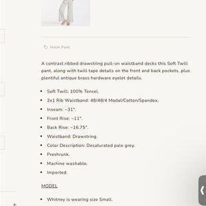 XCVI Women's Light Soft Twill Wide-Leg Chic Pants NWT Large Drawstring Pull On