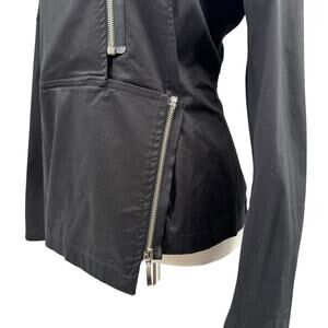 XD Xenia Design Black Poplin Cotton Asymmetrical Zip Moto Jacket