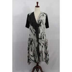 XD Xenia Design Sz 38 L 8 Black Gray Linen Blend Lagenlook Dress