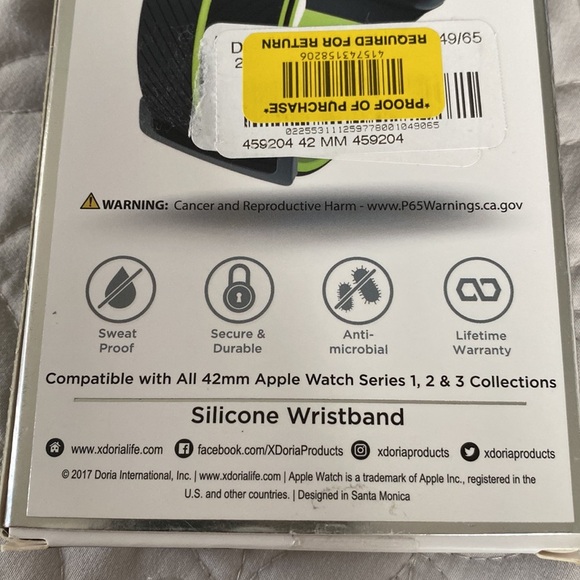 X-Doria Sport action band for Apple Watch 42 and 44 mm. Series 1,2,3 And 4. Never took for the box. Got from Dillard’s and forgot about it