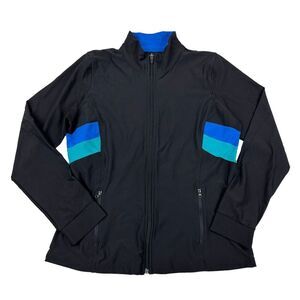 XERSION Black Blue Track Jacket Long Sleeve Full Zip Polyester Spandex Size L