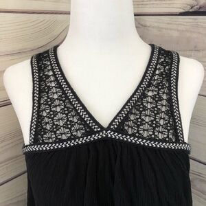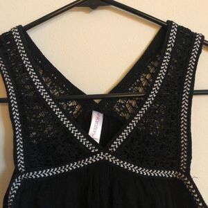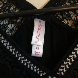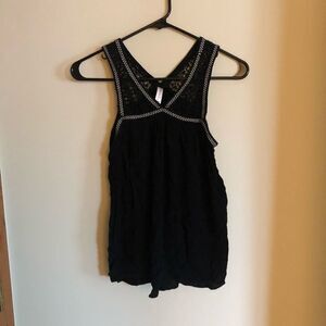 Xhilararion black tank with crochet details along straps