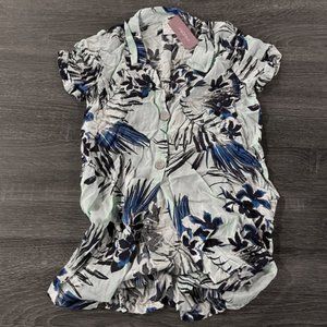 XHILARATION Blue Floral Button-Up Swimsuit Cover Up Shirt Dress