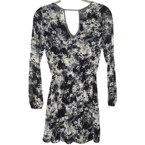 XHILARATION • Grey & Black Sheer Floral Flower Print Long Sleeve Dress