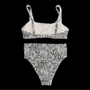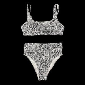 XHILARATION, RIBBED BRALETTE BIKINI. BLACK & WHITE SNAKESKIN PRINT. SIZE M
