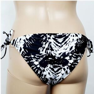 XHILARATION Ruched Abstract Tie Dye String Bikini Black & White Small