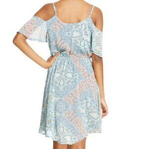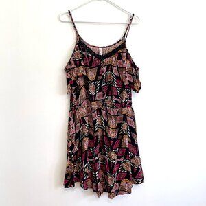 XHILARATION Short Sleeve Cold Shoulder Dress Black Pink Geometric Boho Mini XXL