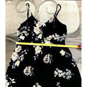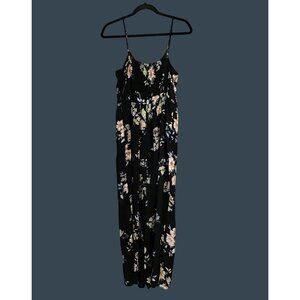 XHILARATION WOMENS BLACK FLORAL PULLOVER WIDE LEG STRAPPY JUMPSUIT SIZE MEDIUM