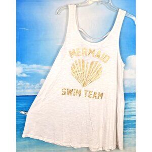 XHILARATION Woman's WHITE Beach Cover MERMAID Swim Team Gold Print size Lg