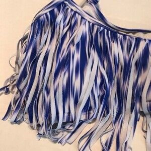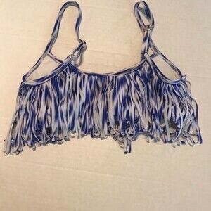Size x-small blue and white fringe Xhilaration bikini top. Lightly padded (removable) with adjustable straps.
