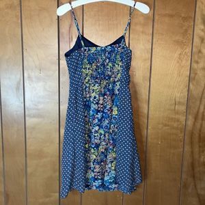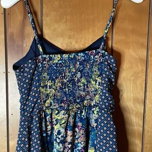 •XHILARATION•NWOT blue and multi collared flowy flower dress with adjustable shoulder straps. Has cinched back and dress is fully lined in size small. NWOT… excellent condition