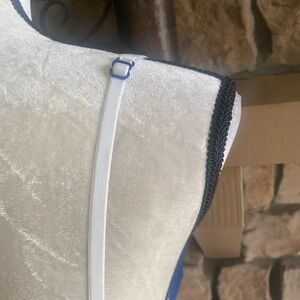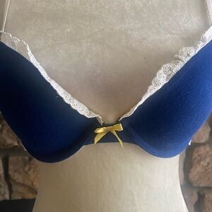Beautiful navy blue and yellow bra, white trim, push up, underwire, excellent condition, size 36b