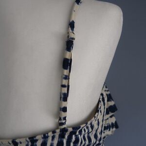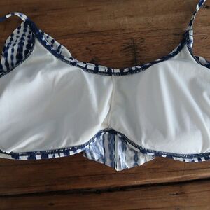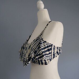 BLUE WHITE TIE DYE RUFFLE BANDEAU SWIM TOP SIZE XL REMOVABLE PADDING ADJUSTABLE STRAPS BY XHILARATION PRE OWNED NO FLAWS