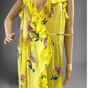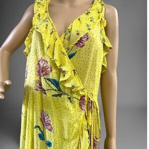 XHILARATION : XL Sleeveless ruffle Surplice neck Faux wrap Hi-low yellow floral