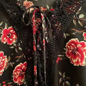 XHILERATION~RED FLORAL BLOUSE~NWOT~SM-M