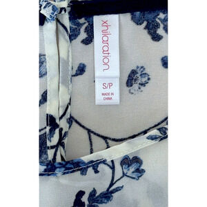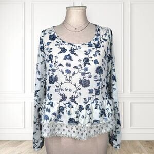 XHILIRATION Tiered Ruffle Floral Peplum Blouse Chiffon Long Sleeve Blue Small