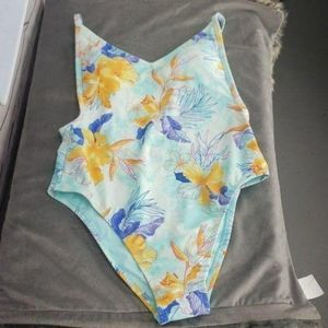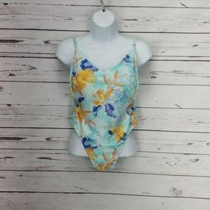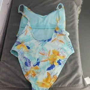 XHilaration Woman's Powder Blue Floral One Piece SwimSuit Size Medium