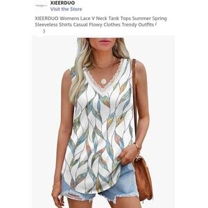 XIEERDUO Womens Lace V Neck Tank Top Summer Spring Sleeveless Shirt Casual Flowy Clothes Trendy Outfit