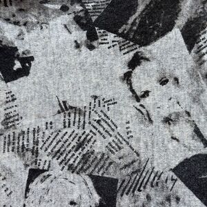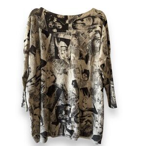 XIKOI Newspaper Print Wool Blend Oversized Pullover Graphic Sweater Black Gray Medium