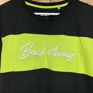 XIOS black graphic tee with “Back Away” text in the middle as well as on the finishes of the sleeve. Runs a bit small, like new!