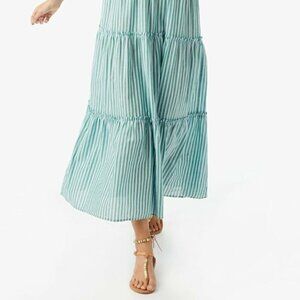 boho, spring, summer, bohemian, lagen look, vacation, minimalist, coastal, beachy, beach, simple, casual, modern, Tuckernuck, Anthropologie, Aritzia, Ulla johnson, streetwear, resort wear, golf, brunch, vacation, coverup, midi, sun dress, green and white, flowy, aesthetic, relaxed, sunny day, contemporary, sexy, lounge, sundress, midi dress, minimalist, aesthetic, feminine, girly, striped, green, light green, tiered, flowy