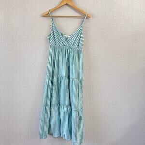 XIRENA GREEN AND WHITE STRIPED SLEEVELESS V NECK MIDI DRESS Size Medium