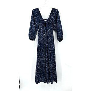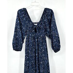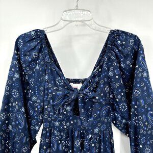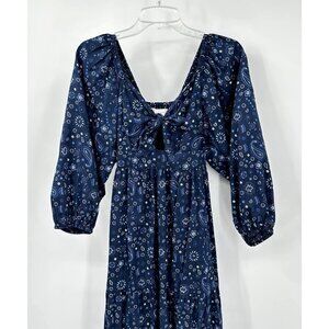 XIRENA IMOGEN maxi dress bandana print puff sleeve front cutout smocked blue L