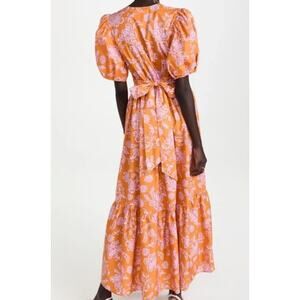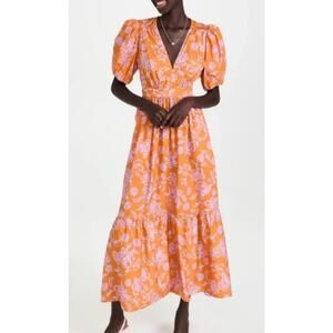 XIRENA Larkyn Orange Pink Print Puff Sleeve Tiered Maxi Dress Pocket Size Medium