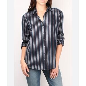 XIRENA NIGHT SPARK STRIPED LUREX BEAU BUTTON DOWN SHIRT MEDIUM