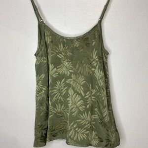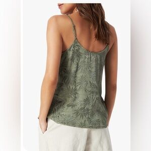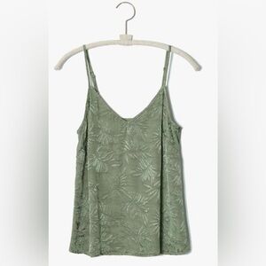 a soft v-neck camisole cut in a tonal Oasis Palm Jacquard with adjustable straps, a clean finished hem, and a swingy-feminine fit