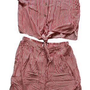 XIX Palms Hawaiian Red & White Striped Set Pants Shirt Women's Size Medium