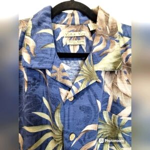 XL 100% Silk Tropical Hawaiian Short Sleeve Button Down Dress Shirt with Pocket