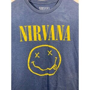 XL 2015 Nirvana Blue Yellow Happy Face Logo Short Sleeve T-Shirt Band Shirt