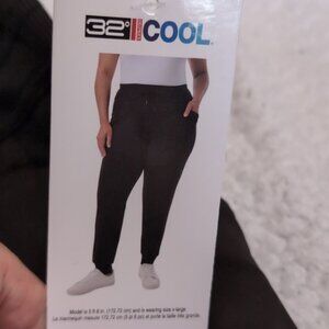 These are brand new women's 32° cool brand sweatpants. They have two front side pockets, a drawstring and an elastic waist band and cuffed ankles. These are black in color and are womans XL