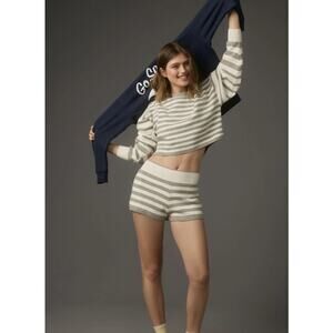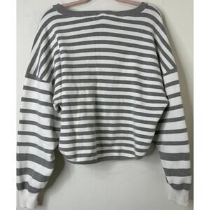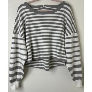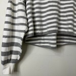 XL Anthropologie Daily Practice Grey White Striped Cropped Pullover Sweater Cozy