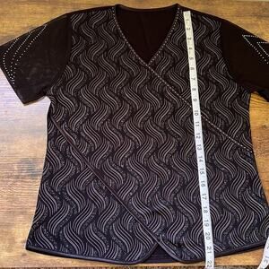 XL Black Mesh Sleeve V-Neck Glitter Top