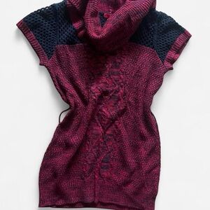 XL Bongo Burgundy & Black Knit Cowl-Neck Tunic