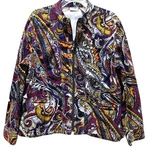 XL CHICO'S Multicolor Artsy Funky Paisley Corduroy Zip-Up Jacket
