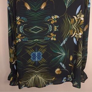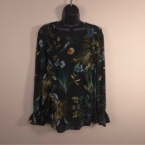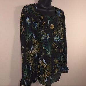 XL COUNTERPARTS BLACK FLORAL TROPICAL PRINT BLOUSE LONG SLEEVE GREEN