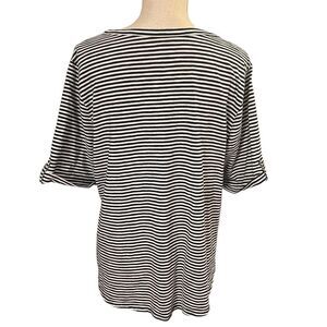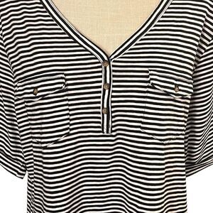 XL Croft & Barrow, 2 Pocket V Neck Tee w/ Roll Tab Sleeves, Navy Blue Striped