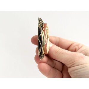 XL Dark Gold Toned Oval Carved Faux Cameo Vintage Pendant Bypass Frame