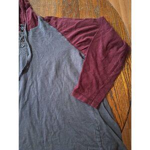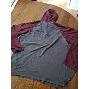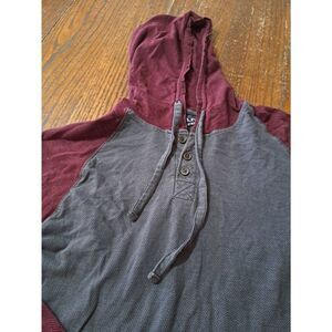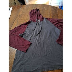 Good Used Condition Women's Size XL Distortion Maroon and Grey Long Sleeve Three Button Pullover Hooded Shirt