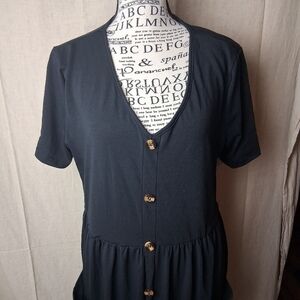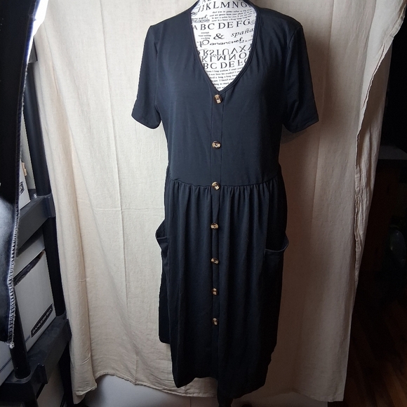 Black polyester XL midi dress with pockets #mididress #womens #pockets #XL #polyester bin 7