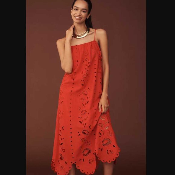 ITEM: Richelieu linen-blend sleeveless eyelet midi dress in Red