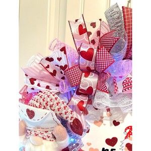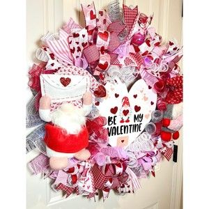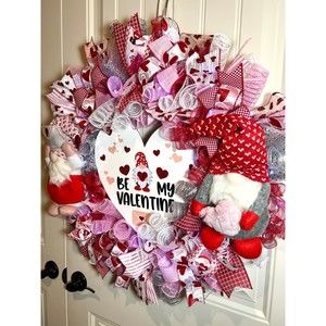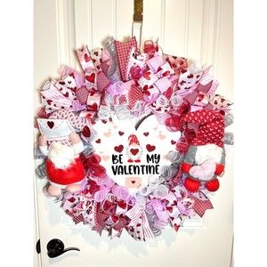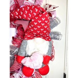 XL Handmade Be My Valentine Gnome Hearts Ribbon Prelit Wreath 26 ins LED XLW6
