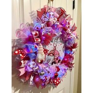 XL Handmade Valentine’s Gnome Hearts Ribbon Prelit Wreath 26 ins LED