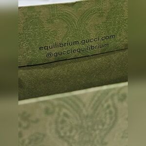Gucci green shopping bag, extra-large designer gift bag, floral paisley design, textured green tote, limited edition Gucci packaging, silky black handles, replacement bag, luxury storage, travel organizer, Gucci collector’s item, gifting essentials.