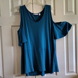 XL Isaac Mizrahi Blue Cold Shoulder Peplum Top NWOT.