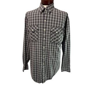 XL Izod Jeans Mens Casual Black White Plaid Button Up Shirt Long Sleeve