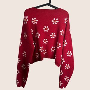 🌼 XL JOSELYN CREW NECK PULLOVER DAISY FLORAL SLIGHT CROP SWEATER Y2K STYLE RED